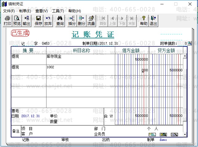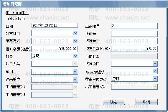 出纳管理对存取款业务设置了单独的“存/取款”功能操作,在现金日记账增加的同时,在银行日记账中对应增加一条日记账,在现金日记账中生成了凭证,该凭证号也会代入对应的银行日记账中。无需重复操作。