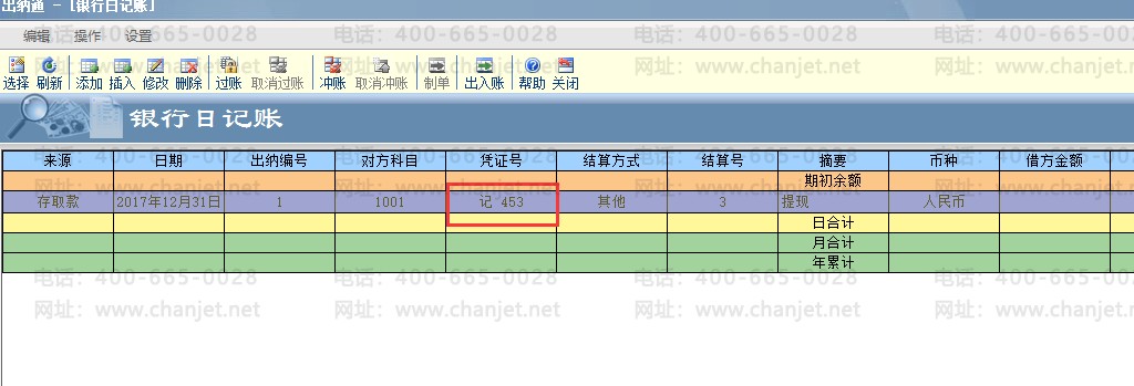 再查看现金日记账列表,显示该日记账的凭证号为记 453 号;