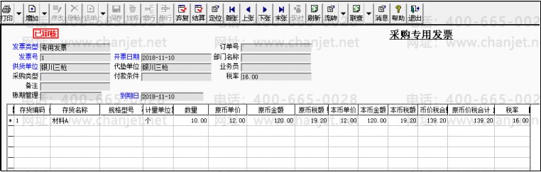 11 月份收到采购与用发票,根据采购入库单生成采购与用发票,并修改单价为 12 元