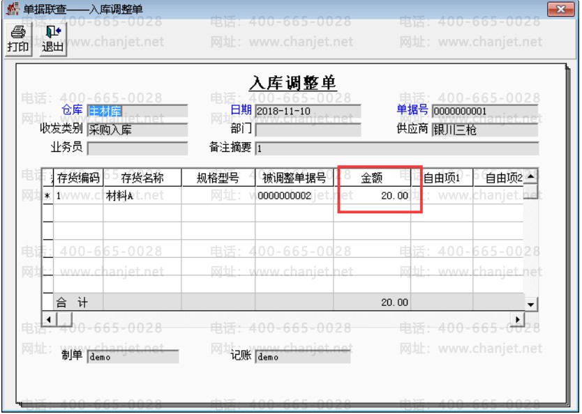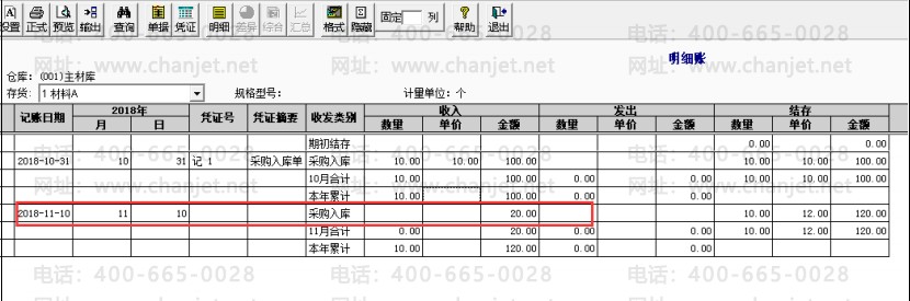 然后查看明细账,会根据采购入库单与采购发票的差额,生成一笔入库调整单,调整存货的结存金额。