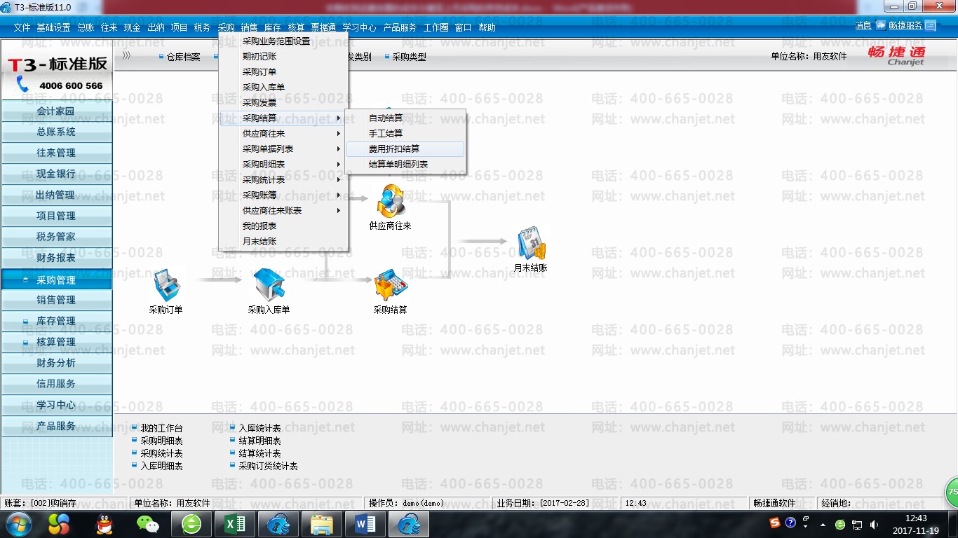 业务分析:通过采购结算-费用折扣结算来实现。