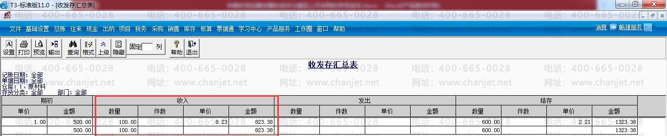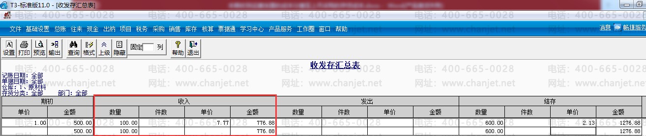 (2).进行运费发票结算后的收发存汇总表