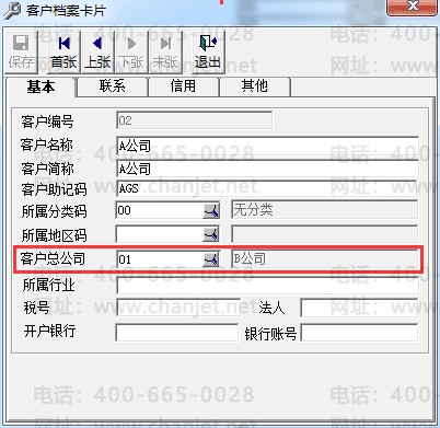 1.新增供应商档案B公司和A公司,A公司的总公司选择B公司;新增客户档案B公司和A公司,A公司的总公司选择B公司。
