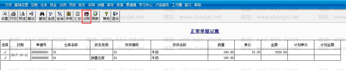 14.在核算模块进行正常单据记账