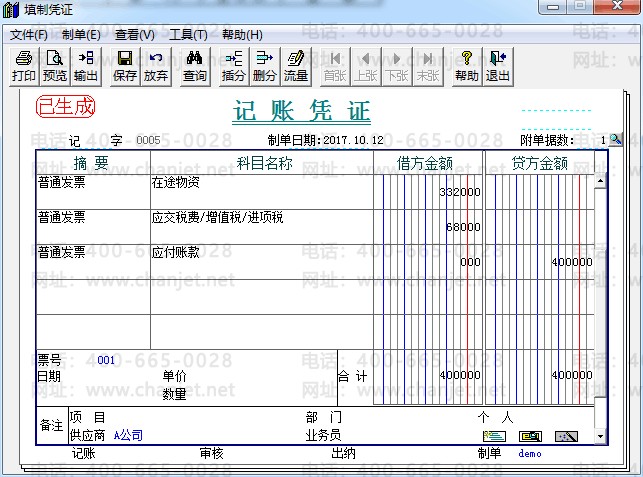 (3)采购发票制单