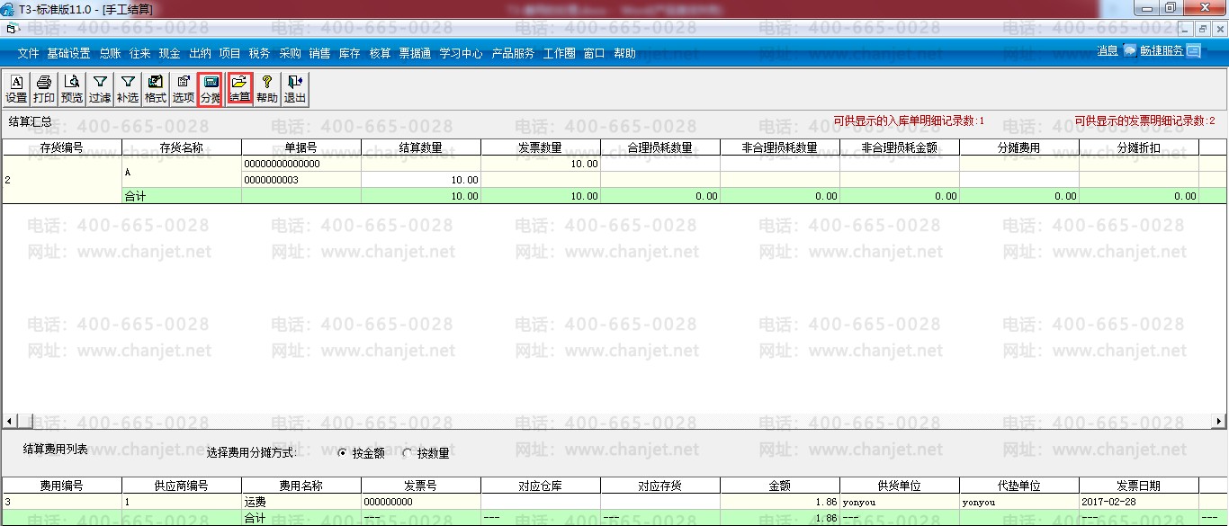 业务分析:如果运费发票本月到,怎需进行手工结算处理,如果运费发票下月才到,则需做费用折扣结算处理。