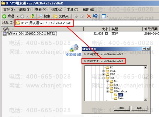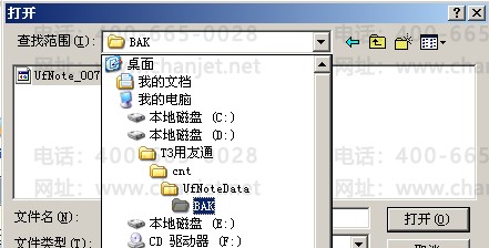 (1)在重新安装软件后,把原来备份的文件放回到备份路径之下(默认路径:安装盘:\T3用友通\cnt\UfNoteData\BAK):
