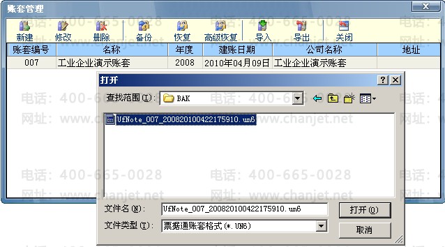 但是备份功能备份的文件仍然是保留账套内数据信息的!!!只要把备份文件后缀加上“.UN6”就可以用导入功能导入回去了。