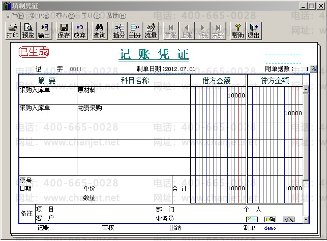 (5)采购入库单记账后,通过购销单据制单和供应商往来制单生成相关的凭证。