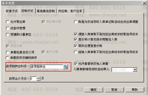 (2)“核算”-“业务范围设置”-“控制方式”中设置进项税额转出科目。