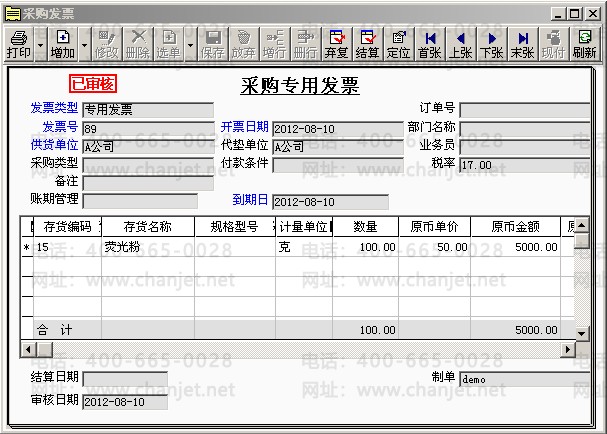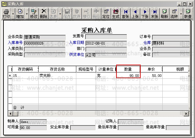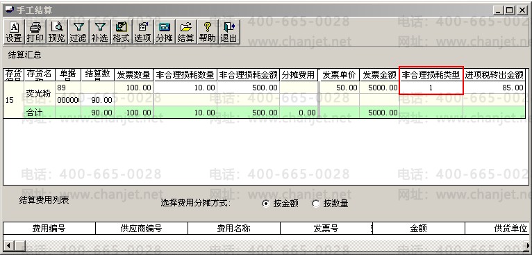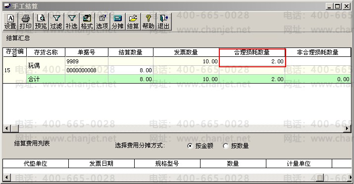 (3)采购发票和采购入库单手工结算,“合理损耗数量”输入2 。