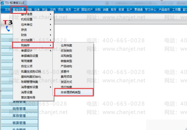 (1)点击“基础设置”-“购销存”-“非合理损耗类型”。