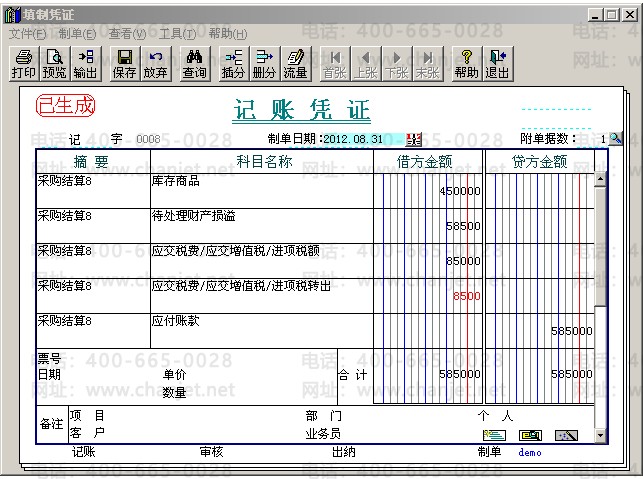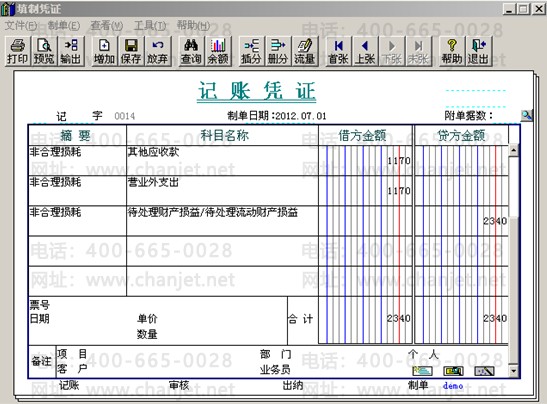 (5)假定这两个商品,1个确认为运输公司的责任,1个确认为营业外支出,则在总账模块填制凭证。