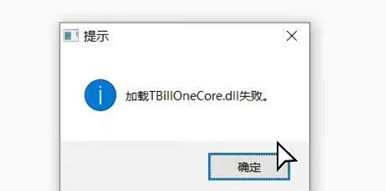 2、凭证打印或者预览的时候提示“加载TBillOneCore.dll失败”。