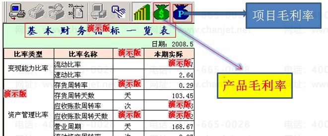 【解决方案】打开“指标分析”,得到“基本财务指标一览表”,表头工具栏中,点击“S”打开“产品毛利率分析表”,点击“P”打开“项目毛利率分析表”。