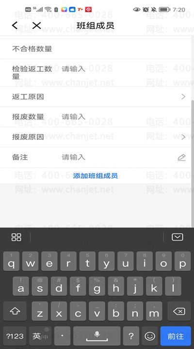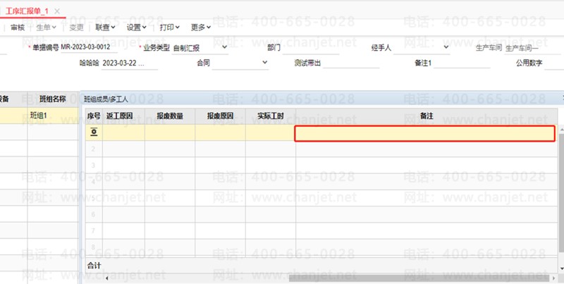 手机端工序汇报单的班组中不能录入备注,没有备注字段,但是pc端上有备注字段栏。