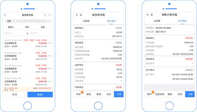 2、手机端,在T+销售下单,可以直接在单据详情中查看执行情况。