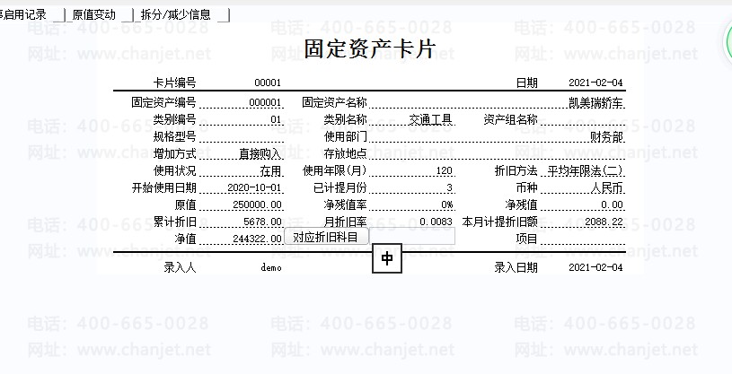 这个就等于总账里面的期初余额了,以前原始的固定资产卡片,所有的累计折旧,全部都这样录入进入系统。
