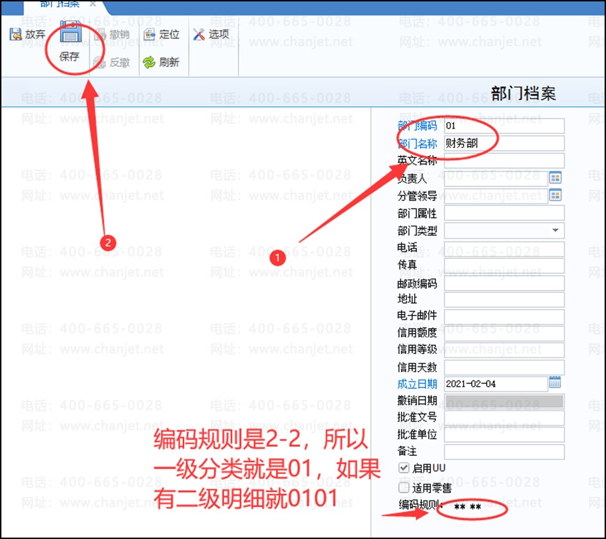 点增加---------然后输入编码和部门名称,最后点上面的保存即可,部门的编码规则在下面