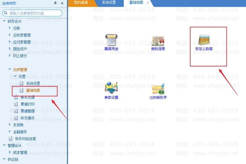 公司有业务需求,需要在知道每一笔支出是属于什么类别的,所以要增加一个字段来说明银行日记账每一笔支出的什么类别的。因此要用到出纳日记账里的【自定义项】