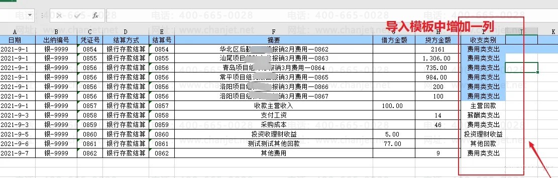 6、如果是通过导入方式导入的,则在原有的模板上,添加一列;