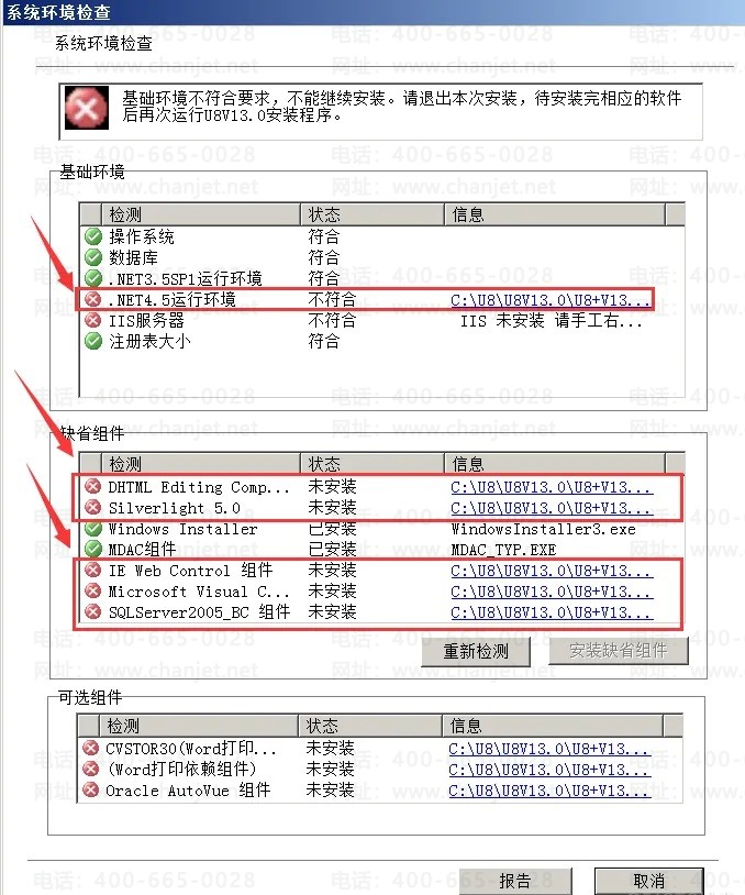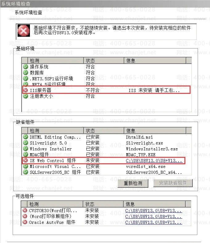 9.重新检测环境,仅剩2个IIS功能未通过环境检测