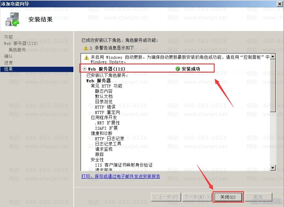 若存在两个IIS功能外的未通过检测,按照上述8操作即可