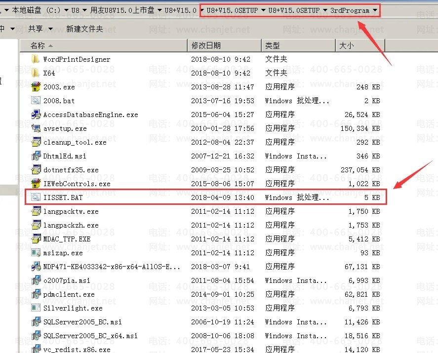 在U8+V15.0SETUP文件夹下3rdProgram文件夹内找到IISSET.BAT,以管理员身份运行,安装完毕重启计算机即可。