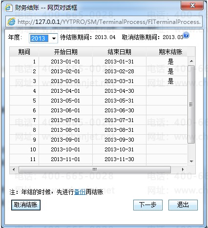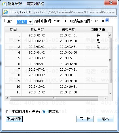 3、财务结账为独占功能,结账时其他人员需退出系统。