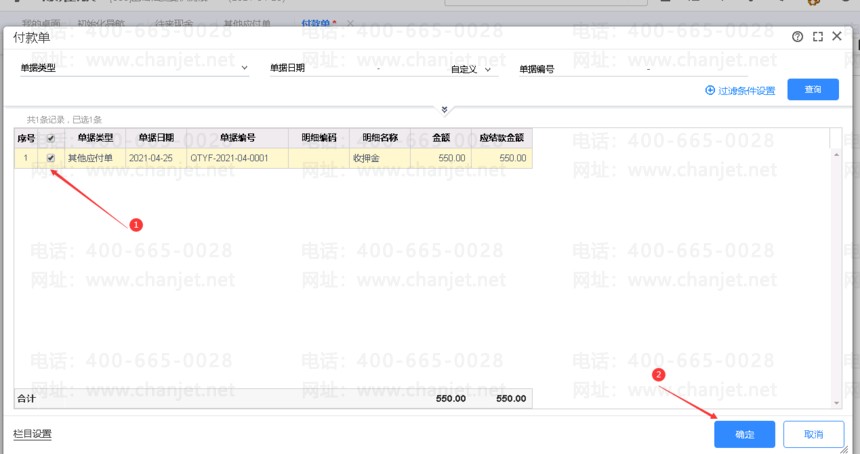 点审核后,该付款单就与其他应付单,核销掉,如下图所示: