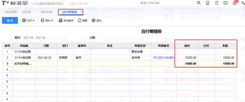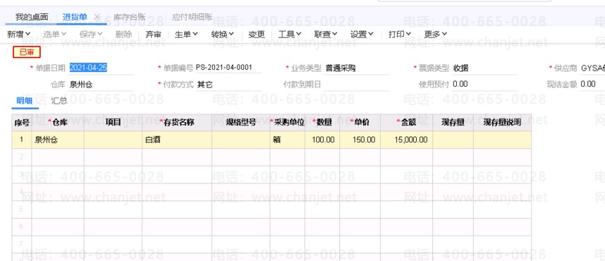 以上是做一张进货单涉及的仓库及应付款。