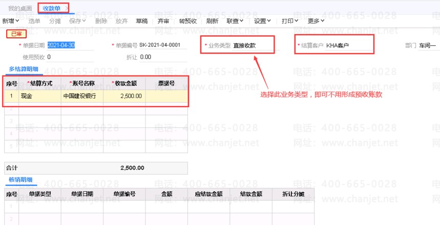 T+没有销货先收款,开收款单不形成预收账款处理步骤: