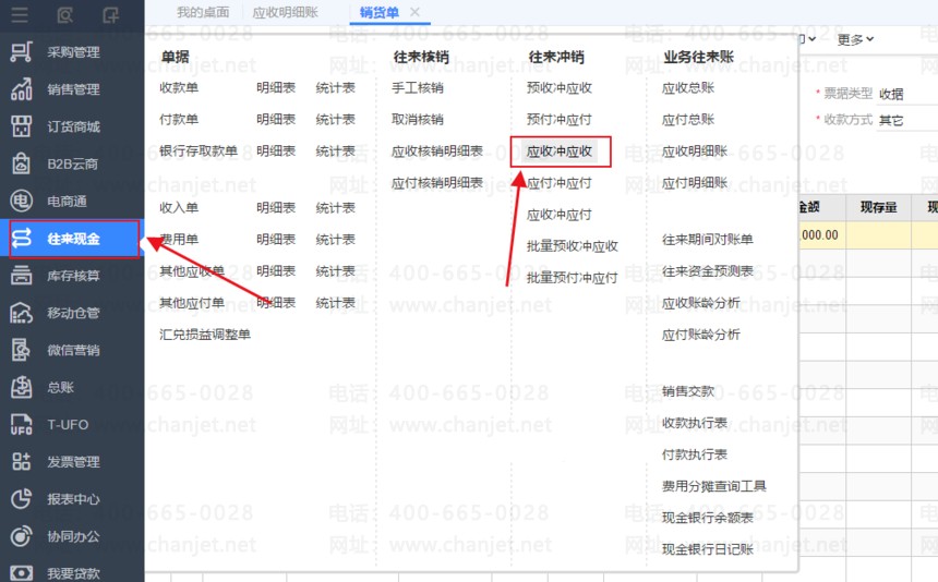 3、接下来我们把A客户的款转给B客户,用应收冲应收的功能,如下图所示: