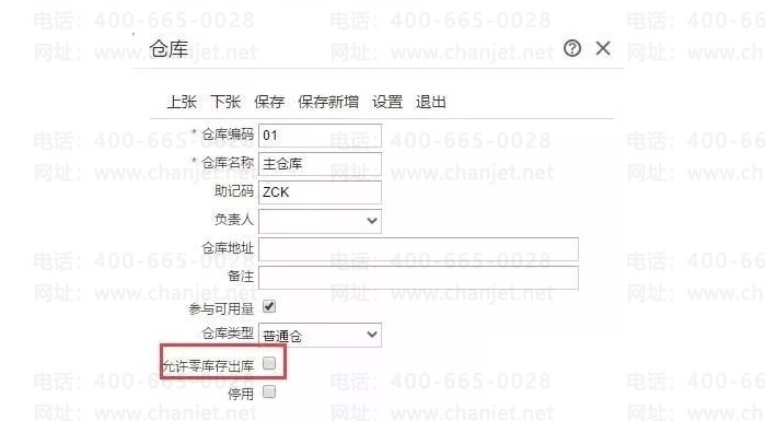 仓库档案未勾选允许零库存出库”。这样即使选项勾选了“仓库允许零库存出库”,当出库单选择这个仓库时,还是不允许零出库的。如下图所示: