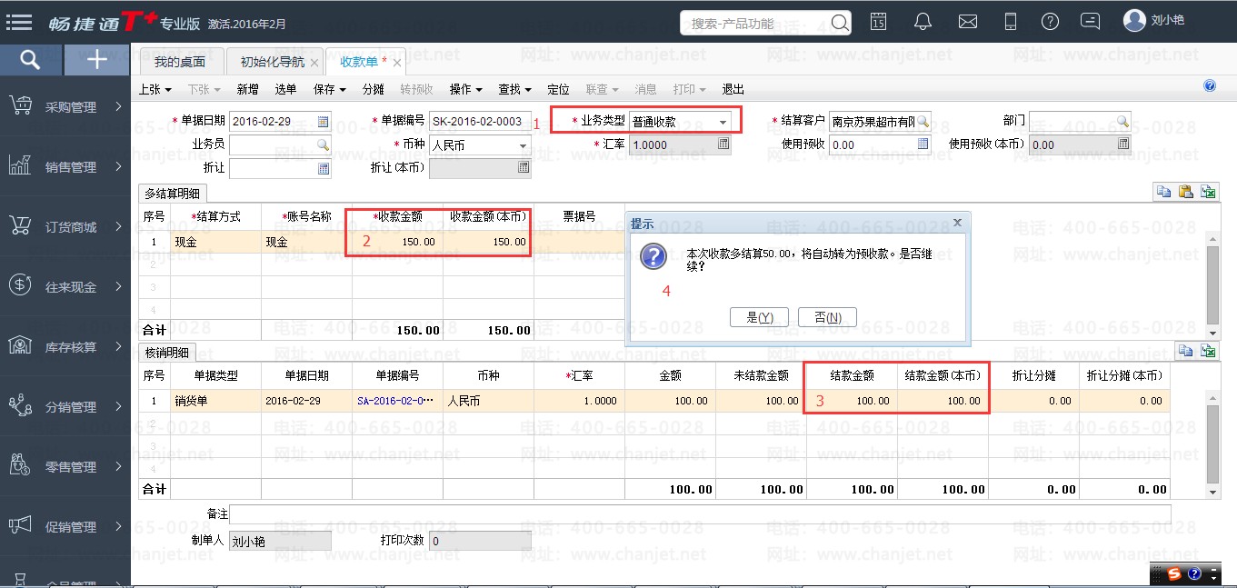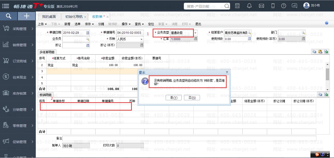 当收款单的业务类型选为普通收款时,单据未选择核销明细或者收款的金额大于核销明细的结款金额,在保存时就会提示转为预收款,预收部分生成的凭证科目默认为“预收账款”。后续就只能在往来现金—往来冲销—预收冲应收,或者在单据上使用预收进行冲销。