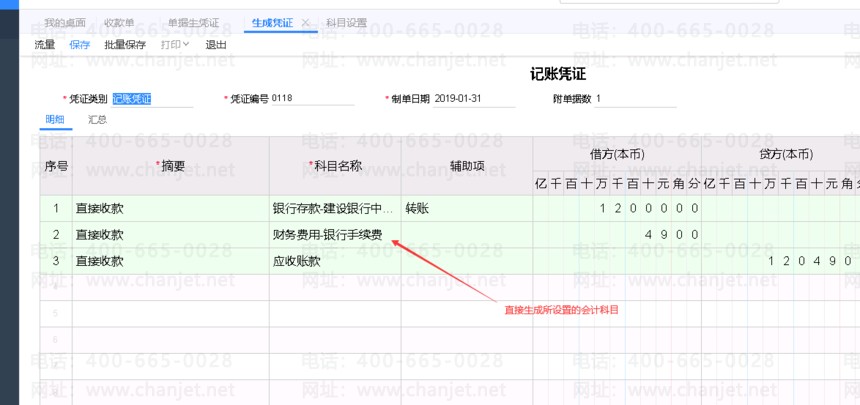 折扣这边如果要直接生成会计科目,要在此处设置,如下图所示: