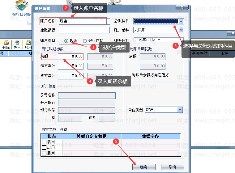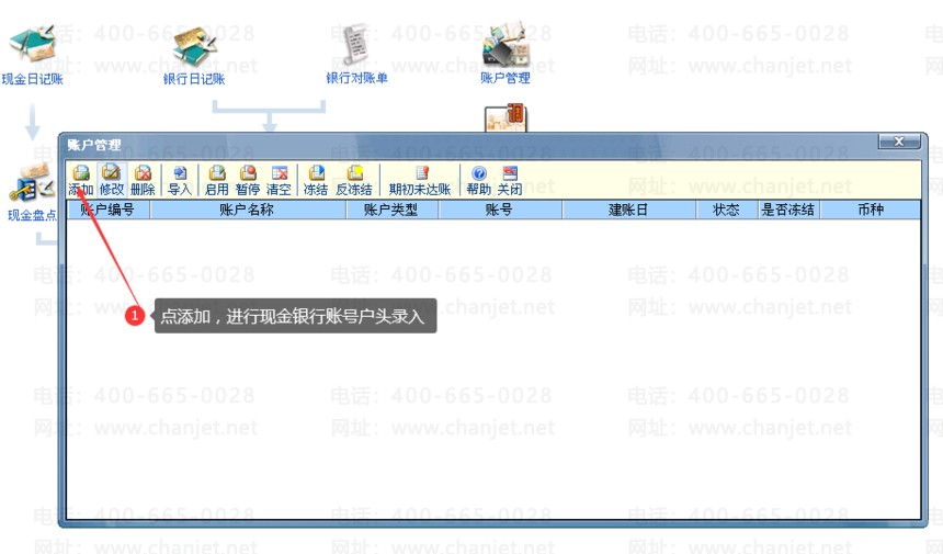 指定科目后回到出纳管理,添加账户界面,如下图: