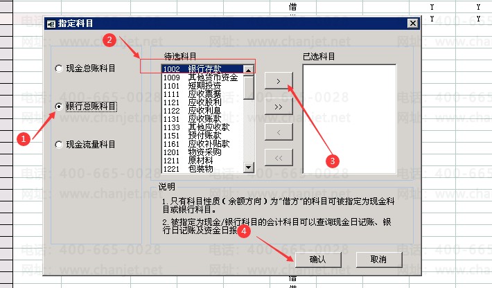 在指定银行科目前要先添加子科目,具体的银行名称及账号,与出纳账户对应。