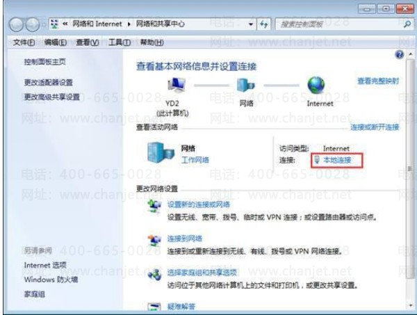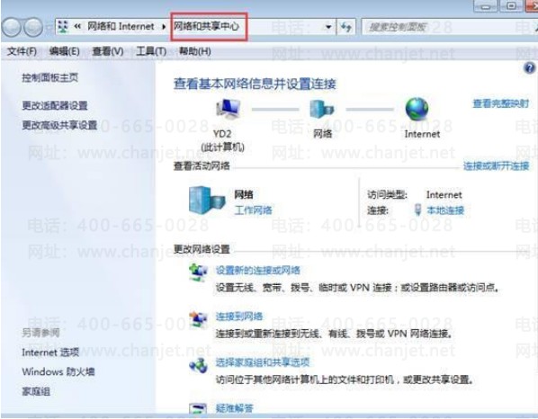鼠标右键点击”网上邻居“,进入网络和共享中心界面,如图下: