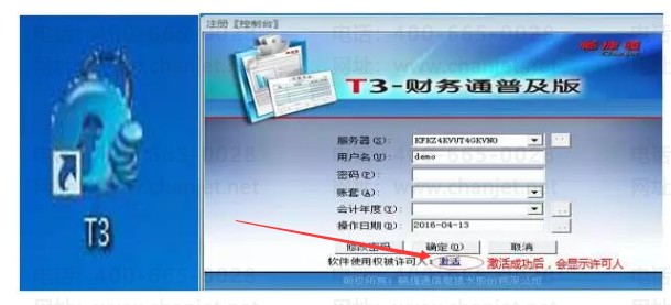 1、点击T3软件标志,打开注册控制台后台点击下方“激活”即可正式进入激活界面。