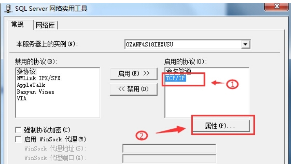 1、在启动的协议中选中 tcp/ip ,点击 属性。