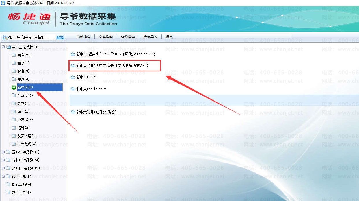 2、选择新中大,点开【新中大银色快车 TX 备份】