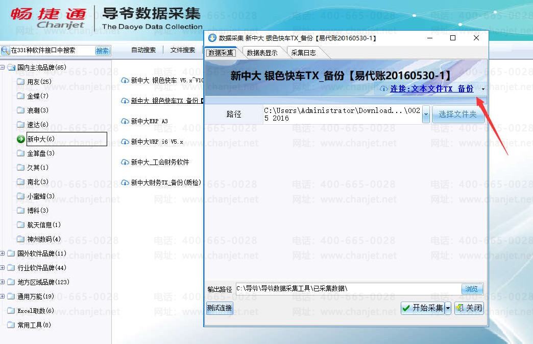3、点开【新中大银色快车 TX 备份】选择右下角的连接,选择【文本文件 TX 备份】