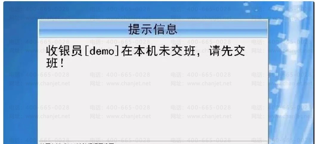 Q2:收银员未交班后退出,其他收银员当班时提示:收银员【xx】在本机未交班,请先交班。
