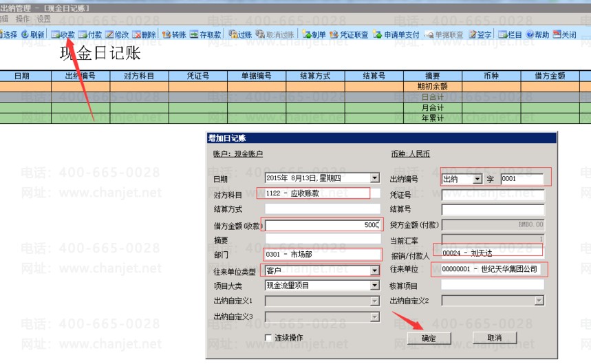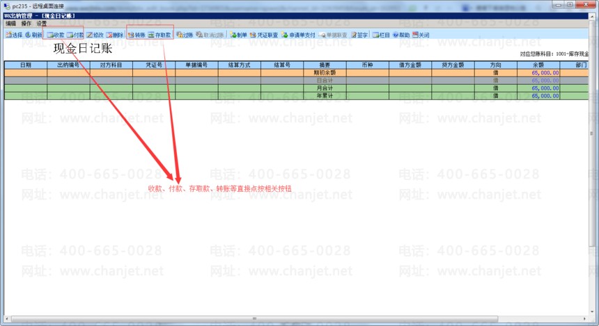 2、点击“现金日记账”开始现金收付业务,如下图
