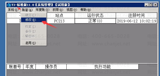 用友T3如何修改账套名称