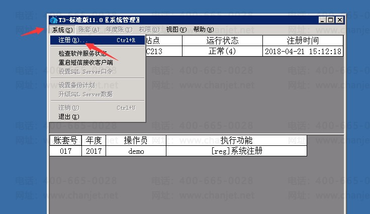 1、点桌面:系统管理-->文件-->注册(用户名为要修改账套的账套主管);