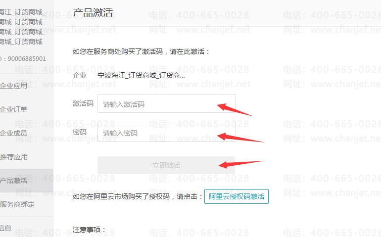 从左侧菜单栏点击【产品激活】,输入【激活码】和【密码】点击【立即激活】即可。