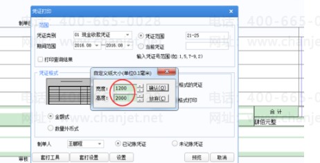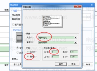 第二步,选取纸张,我用的是1200*2300的通用凭证纸。纸张大小选择【用户定义】方向要选择【横向】页边距可以自由调节。如下图
