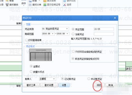 第一步,打开凭证,点击左上角打印。如下图